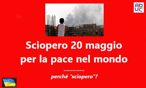 Venerdì 20 maggio è previsto sciopero nazionale. Contrarietà all’invio di armi in Ucraina, si chiede anche aumento spese sociali e salari, ripristino scala mobile e reddito per tutti (1). Sciopero anche in Rai.